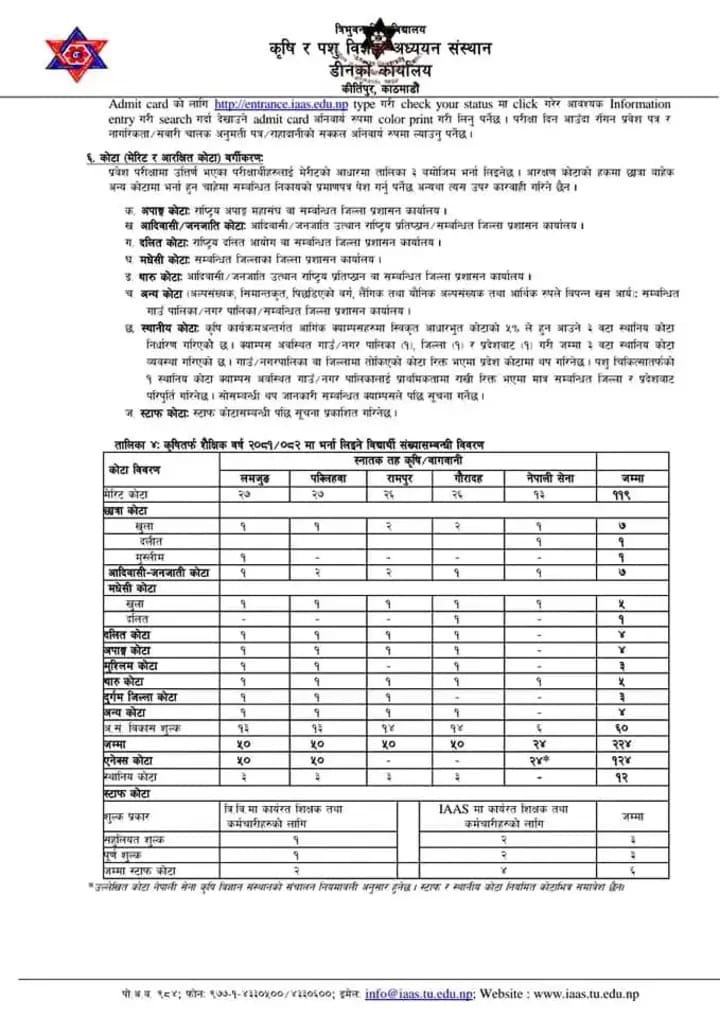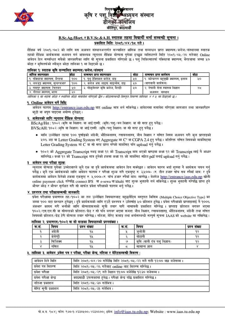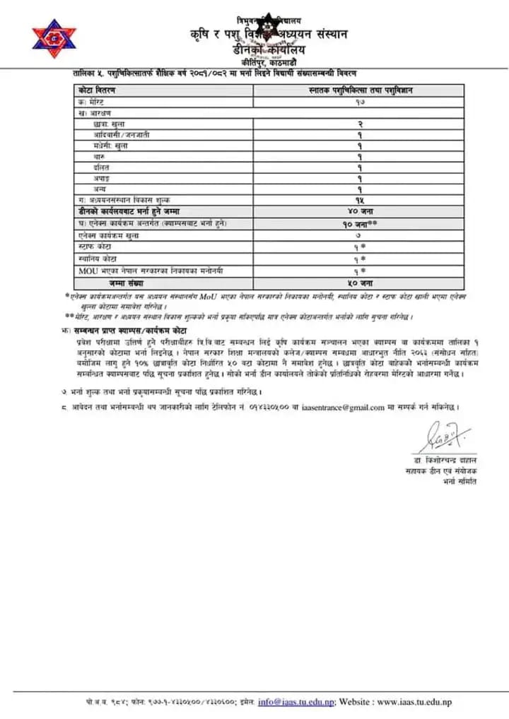 त्रिभुवन विश्वविद्यालय कृषि र पशु विज्ञान तर्फ B.Sc. Ag र B.V.Sc. & A.H.स्नातक तहमा विद्यार्थी भर्ना सम्बन्धि सुचना ।।।