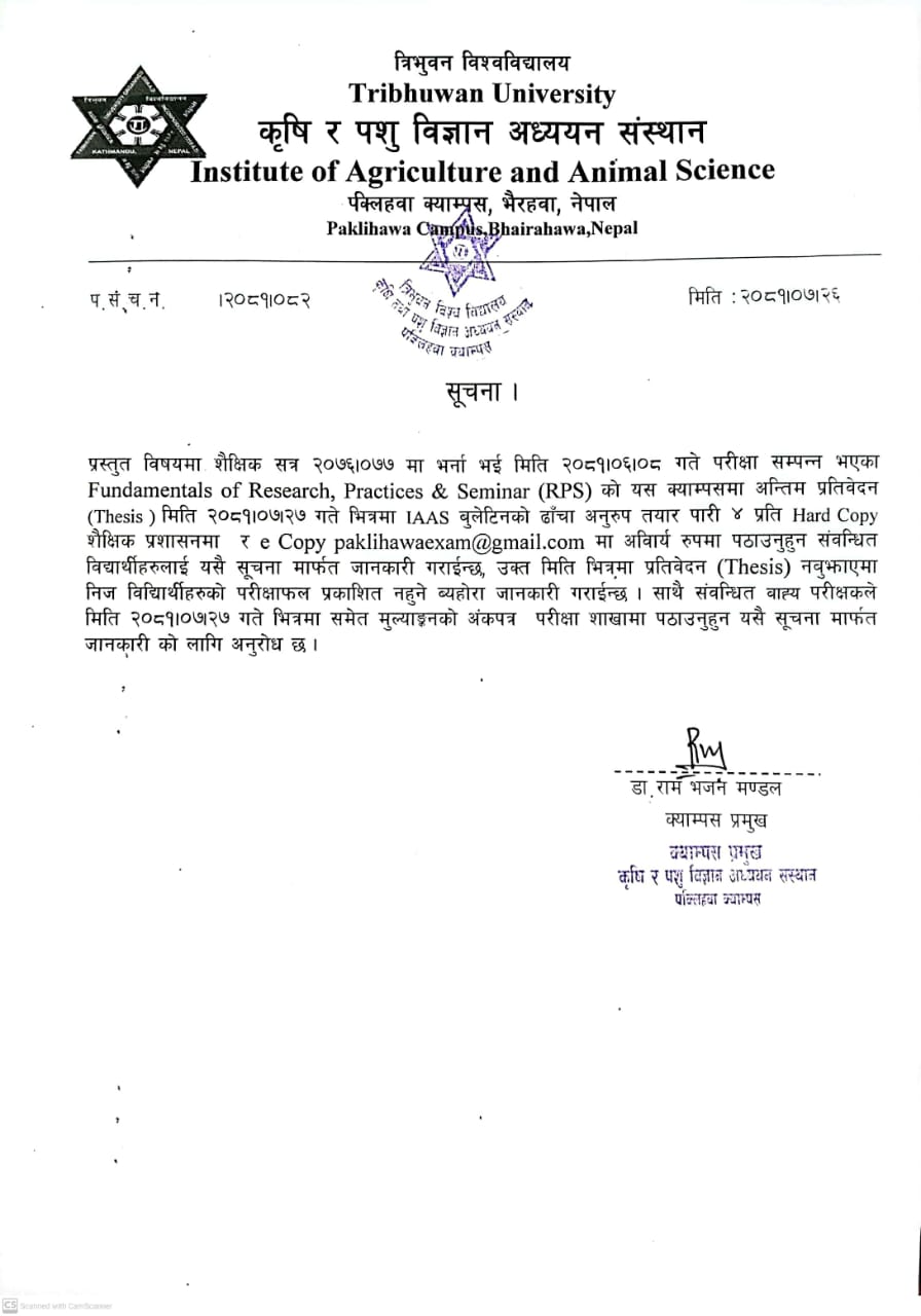 B.V. Sc. & A.H. तर्फ रिक्त Annex कोटामा लागि भर्न...