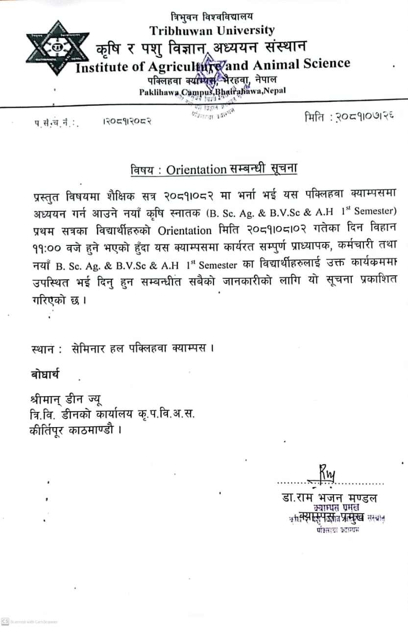 अभिमुखिकरण (Orientation) कार्यक्रममा उपस्थित हुने सम्बन्धी सूचना ।।