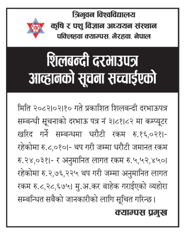 शिलवन्दी दरभाउपत्र आव्हानकाे सूचना सच्चाइएकाे।।